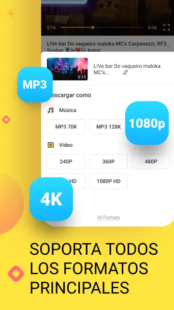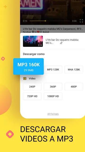 5. Snaptube ofrecerá una variedad de opciones de descarga, incluidas resoluciones de video y formatos de audio.